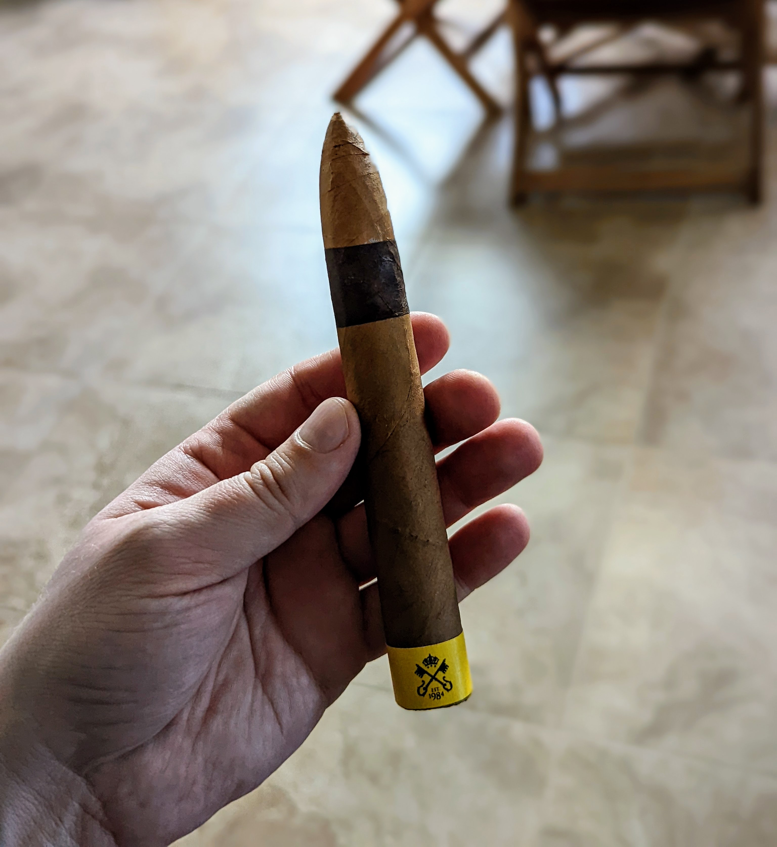 Rival is a 6.25 x 52 pyramid crafted by Rodriguez Cigars in collaboration with The Hot Ticket Podcast. It combines two wrappers — a Connecticut Shade and a Habano Maduro — over a Nicaraguan binder with Nicaraguan and Honduran fillers. The profile opens with a subtle peppery note balanced by cream and butter, then develops hints of bread, sugarcane, and spice